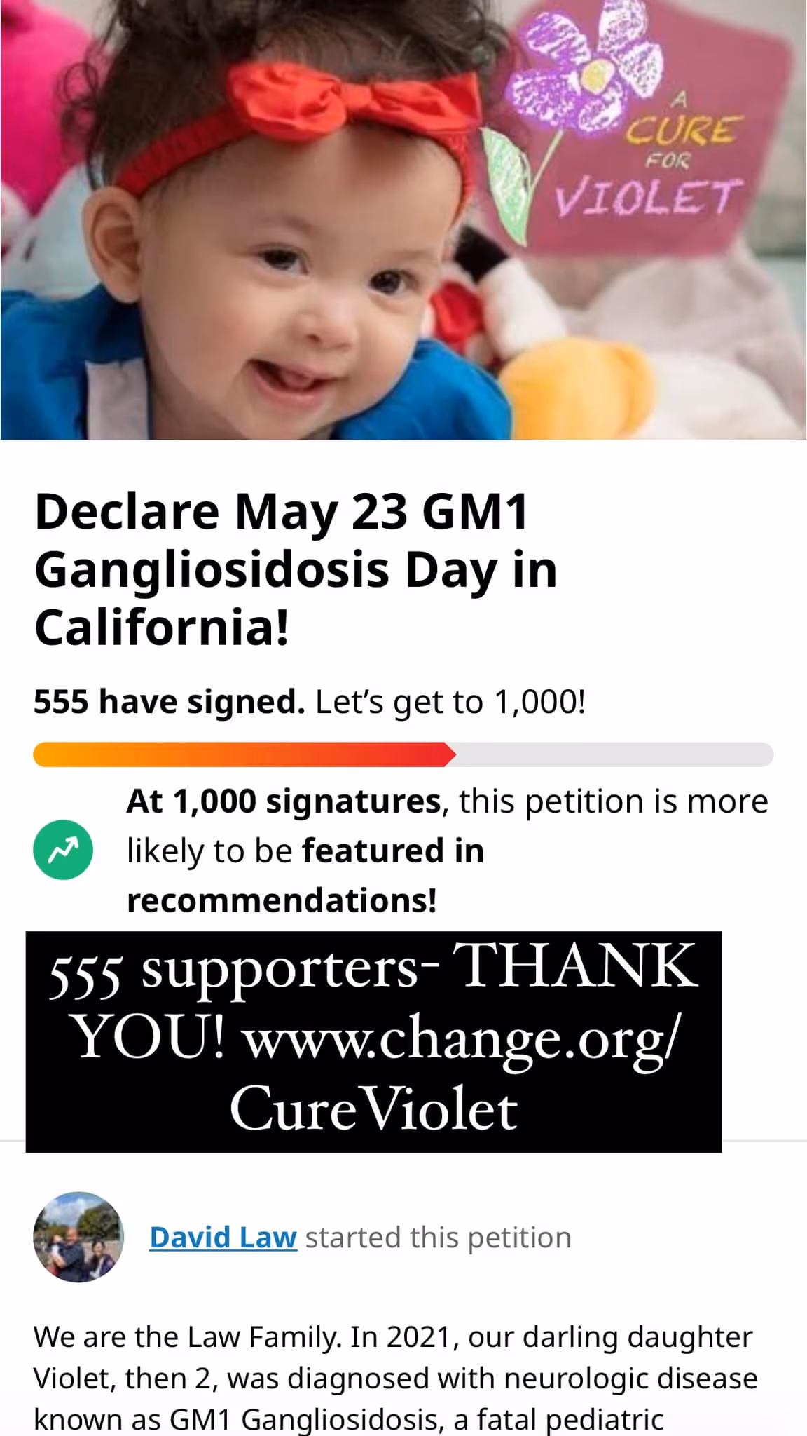 When we first learned about Violet’s diagnosis - and in the few months thereafter - we were living in a heightened state of anxiety. So much adrenaline and panic. But after several months, the shock wore off and it became more of a chronic, dull ache. And I figured out how important it was to channel that energy and pain into something productive, rather than wallowing in it for too long and doing something destructive. I certainly went through different phases and different ways of coping. But in the end, the thing that did it for me and provided me with the most contentment was throwing myself into advocacy. Staying active in a positive way has brought me peace. I’m in a place now that I wasn’t a year ago.